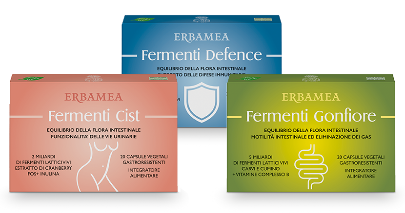 Nella flora intestinale convivono batteri buoni e cattivi, ed è fondamentale per la nostra salute che vivano in equilibrio. Per aiutare la flora batterica a ritrovare un nuovo equilibrio, Erbamea propone Fermenti Cist, Fermenti Defence e Fermenti Gonfiore, 3 integratori da scegliere a seconda delle proprie necessità. Novità